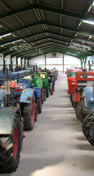 Schlepper aus dem In – & Ausland, darunter Typen bekannter Hersteller und Typen von (fast) unbekannten Firmen, die nur wenige Traktoren gebaut haben. Außerdem können sämtliche Maschinen, die einmal das Arbeiten auf dem Feld und Hof erleichtert haben, angefangen vom Kleingerät bis zum Mähdrescher, besichtigt werden.